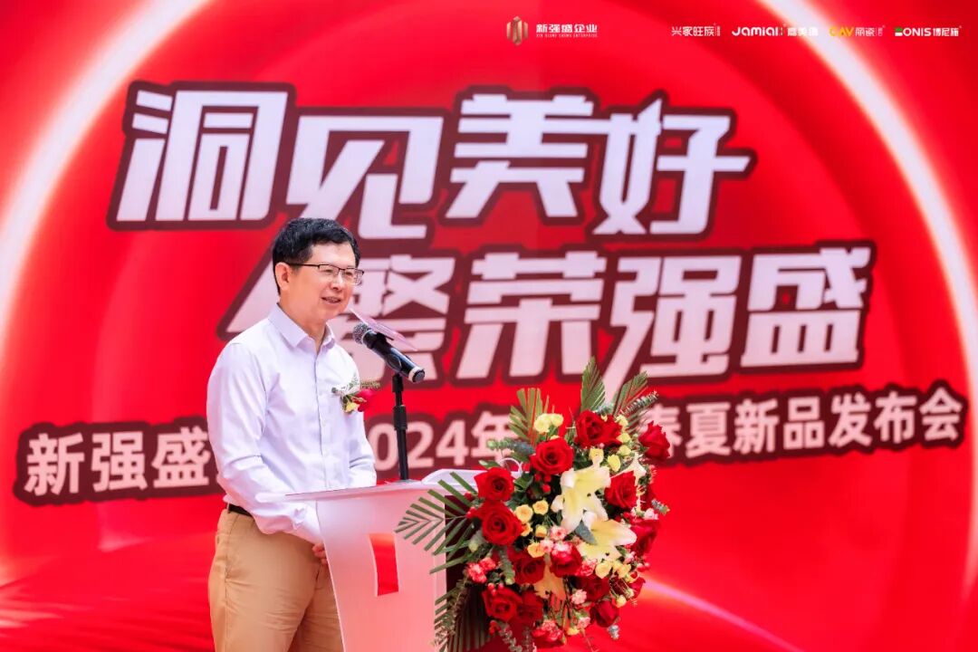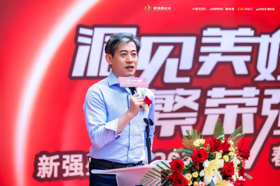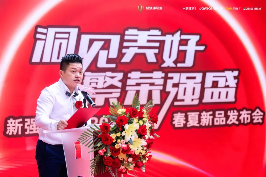 作为企业掌舵人,新强盛企业董事长许国强先生登台致辞,向各位风雨同舟、荣耀并行的加盟商家们表达了衷心的感谢。许董表示新强盛企业自成立以来,始终以“无惧时间考验,品质依然保证”为质量方针,在品牌、产品、营销等各层面的一系列举措,成功为实体门店赋能增益,助力各大门店持续创收,提升了品牌在市场占有率。未来,新强盛企业将继续紧跟国家步伐,积极响应国家政策,踩风口抓机遇,深化赋能,引领品牌发展再上新台阶,助力各渠道合作伙伴实现质的飞跃。