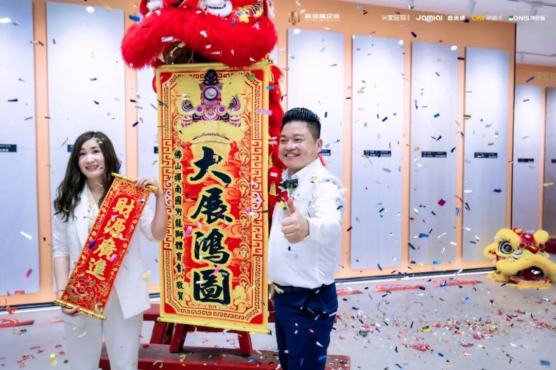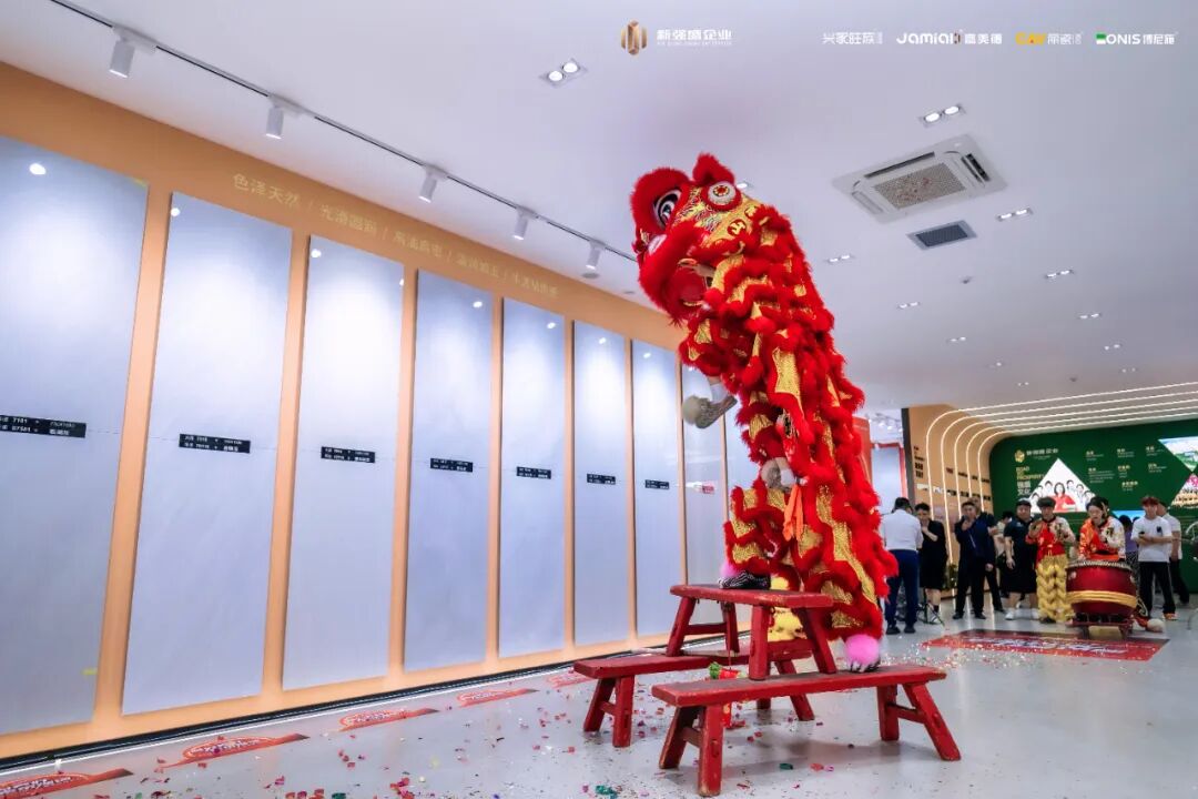 伴随着激昂的锣鼓声,一众主礼嘉宾共同步入新强盛展厅内,为此次全新洞石系列进行揭幕仪式,礼花四溅现美好,揭幕仪式的完成,意味着新强盛企业迈入了新的发展阶段,为品牌发展注入了新活力。