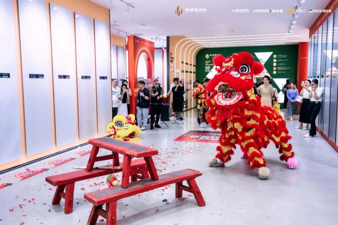 随后,在一众领导致辞发言之后,发布会进入了最关键的环节,在与会嘉宾以及协会领导的见证下,新品发布会剪彩仪式正式开始。活动现场醒狮献瑞,鞭炮齐鸣,氛围热烈。